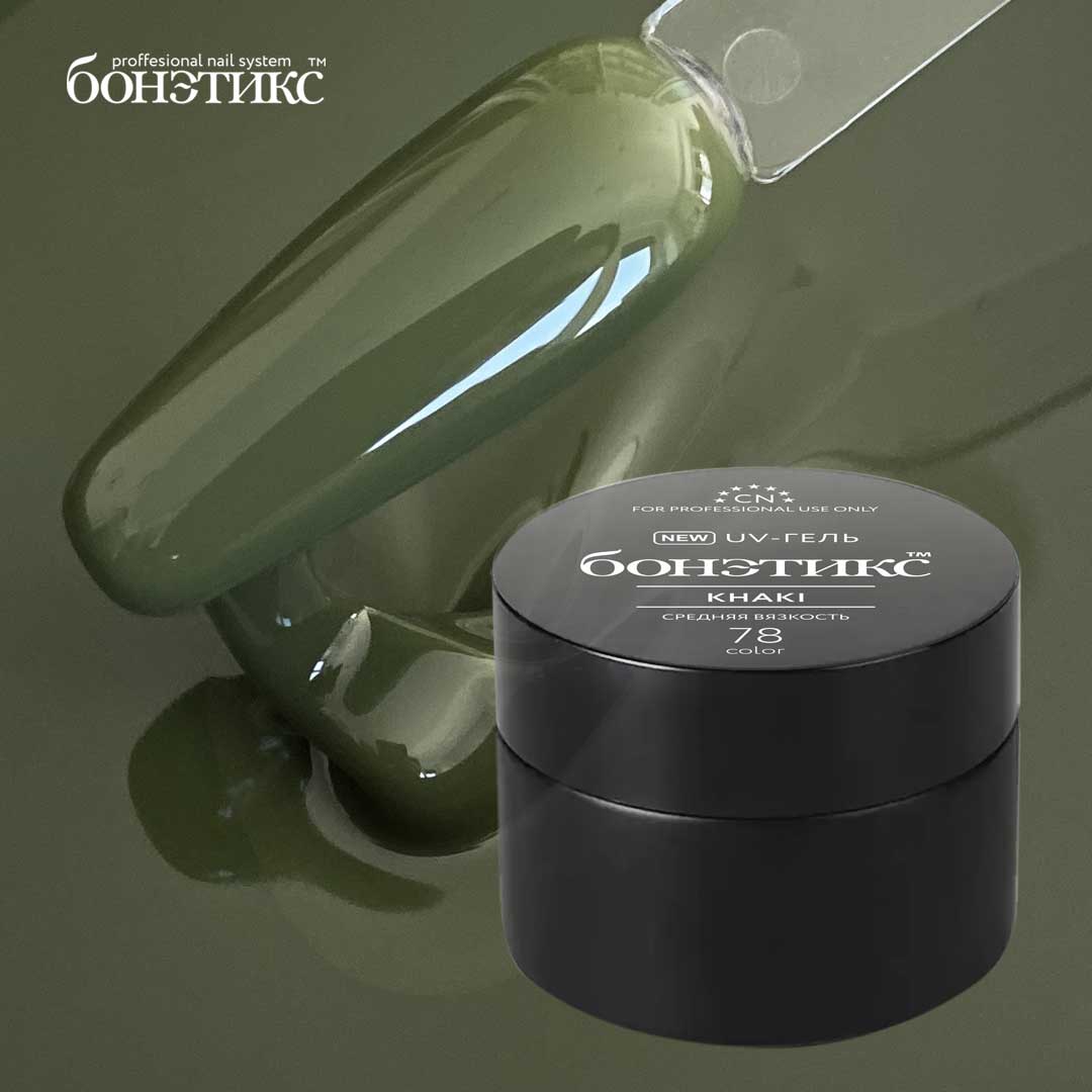 Жёсткий трехфазный камуфлирующий гель Бонэтикс™ цвета хаки, для наращивания, моделирования и коррекции ногтей.